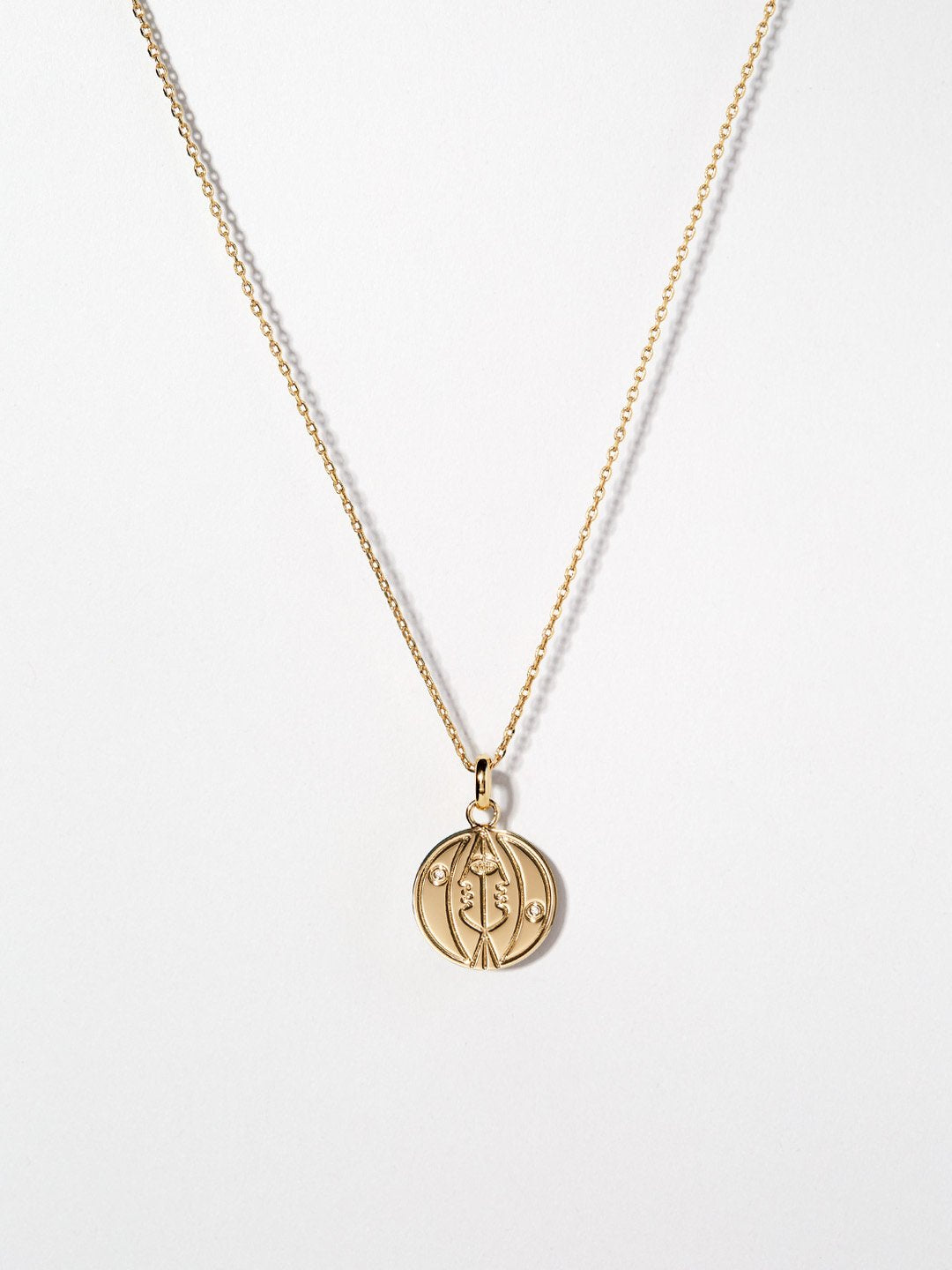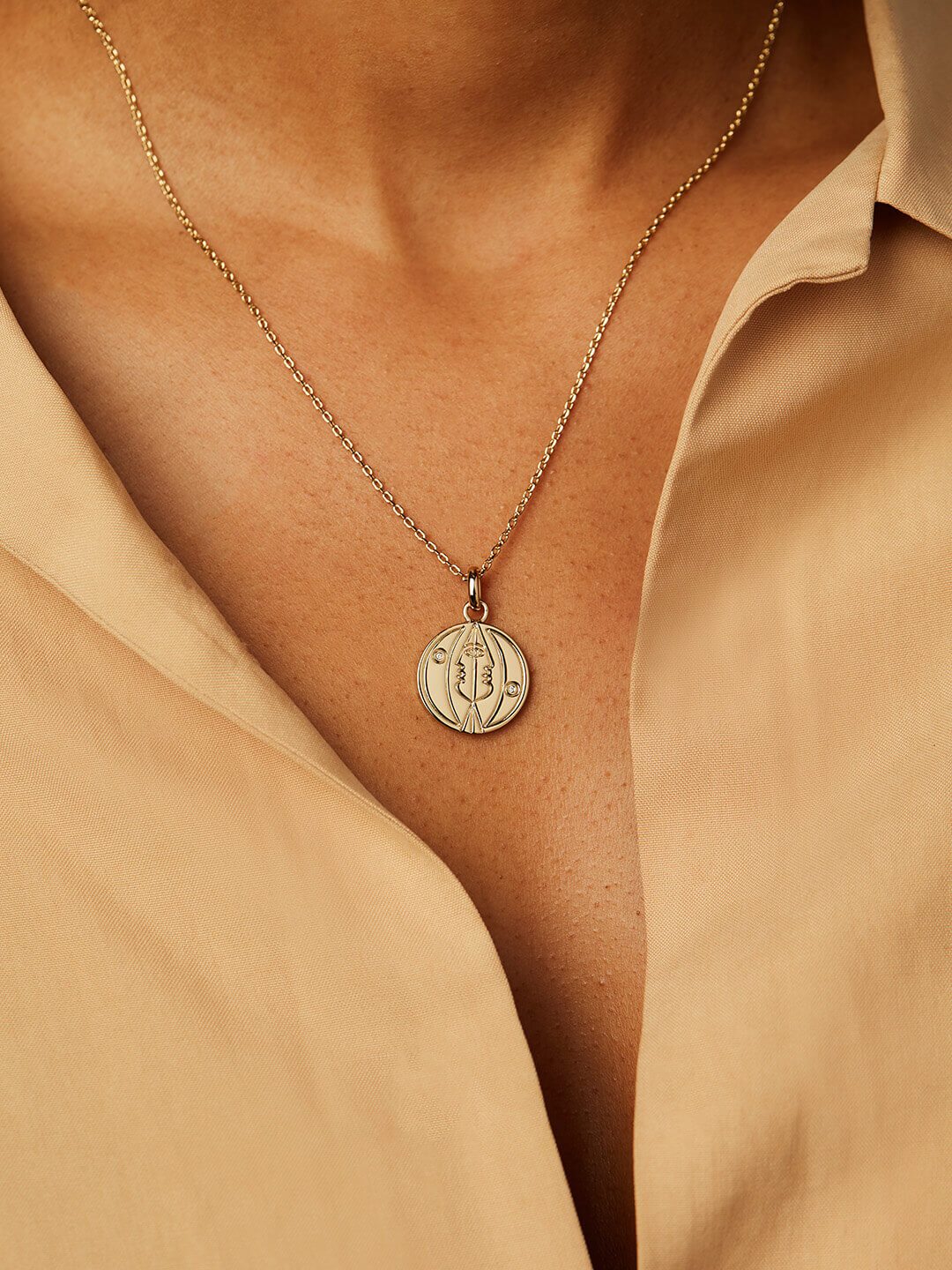 • Astro coin necklace dipped in 14k gold and featuring cubic zirconia gems